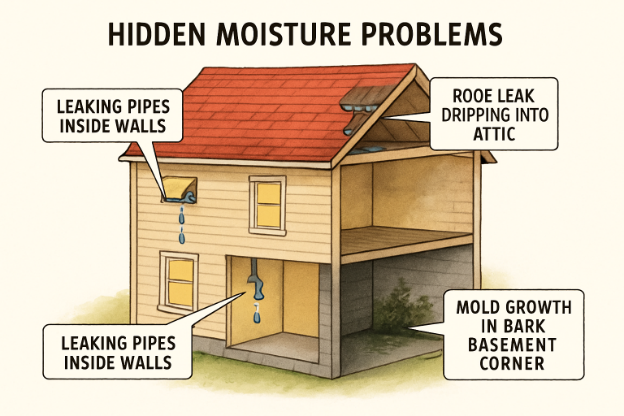 Since even small amounts of hidden moisture can lead to these health problems, swift identification and management are crucial.